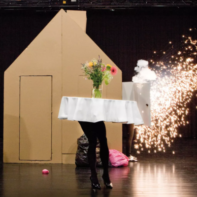 Miet Warlop y mêle humour, poésie et critique sociale pour évoquer nos relations complexes à l’autre, à nos habitats et à notre environnement.